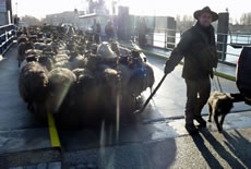 4.3.12 . .Schaap up de Priwallfähr För den 26. Februar Klock 9 weern ca. veerhunnert Schaap anseggt. De sullen mit de Fähr vun den Priwall na Tramünn översett warrn. Ehr Tohuus weer de Landschaftspflegeverein Dummersdörper Över. In de Wintermaanden weern se up de Wischen in't Meckelnborger Land. Nu keem aver de Lammtiet un dor müssen se in ehr'n Stall in Dummersdörp. Dat weer för de Lüüd in Tramünn en groot Beleevnis. Sülvst to de fröhe Stunn harrn sik veel Tokiekers infunnen. Wi weern ok dorbi. De mehrsten harrn en Kamera to Hand. Dat Weder weer goot. De Schaap müssen up ehr'n Weg na Dummersdörp noch en Bahnövergang passeeren, bevör de neegst Tog keem. Dorüm müssen de Schaap to rechte Tiet översett warrn.