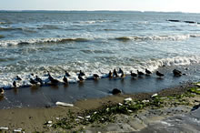 De Penner butendieks un de Gröönlandwischen binnendieks üm de Joadebucht ümto (van Fedderwardesiel up de Oosterkant över Dangast und Willemshoaben bit hen noa Schillichhörn an de Westensiet) sünd van de juropiensch Regeern in Brüssel as Voagelschutzrebett deklareert worden. Annerswons un överall hevvt Naturschützer un Naturnützer up een Padd tosoamenfunnen, de de Goosen (un ok anner Wilddeerten) to överlääven helpt. De Buuren as Natuurneeter günnen de Wilddeerten dat Frääten un kriecht dorföör up de anner Kant ut de Stüürkass een doalerhaftigen Utgliek föör dat, wat hör dor an Aarnt dör de Nöäs geit, wiel de Frücht van hör Land statt as Doalers in hör Knipke, as Ruuchfoor in de schmachtich Goosen hör Buuk laand. See, de Buuren, schöält joa su dat Sinnen in de Regeerungskoppen nich allennich de Lasten droagen, de Naturbewoahren nu moal mit sükk brengt. Naturbehollt is Allermannsdoon, un su moot ok elker Minsch sien Deel dorbidoon. Ikk weet nu nich, woarüm de een ov anner Buur nich mit de annern disse Padd geit un dat Naturgeböören to een föör alle Sieden goodet Waark warden lett. Ikk froach mi stilkens, woarüm dor bi de Landeegendöömer ov Hüürlüü wekke tüschen sünd, de up de Doaler-Utgliek wat schieten, un de leever Kanonen upstellen, üm dormit in de Gägend rümtoballern un dorföör doch verrafftich ok noch een amtliched Tostimmen kriecht. Schull dat wääsen, dat disse Moakers und disse Tostimmers in hör Koppen noch rüpelhaftich Jungs blääven sünd, de geern wat mit een Püüster in de Gägend rümballern? Dat schullen see denn bäter blods an d Olljoahrsoabend doon, dat is dries blossich eenmoal in d Joahr. Ovwoll dat ok all eenmoal toveel is. Wat see langs de Dieken van Petershöörn up Dangast to mit de Balleree näämich moaken, dat ist nix as Deertenquäleree Massendeertenquäleree, wiel de Goosen sükk dör dat Vergrämen as see dat söötschnutich benöömen nich de föör de Toch noa Sibirien nödige Liev anfrääten köänt. See mooten sotosärgen mit een losen Sprittank de lange Reis in hör Sömmerrebetten anträden. Wo veele Nonnengoosen dorüm ünnerwäängs verrekken, wiel hör de Kräften verloaten, dat lett sükk blods vermooden. Wu veel dat denn nipp un nau wäst sünd, dat weeten wi eers denn, wenn keenen van de Deerten mehr dor is. Jümmers, wenneer mi wäär so een Doon, as nu jüüstemang hier an de Joadedieken, tömööt schleit, denn denk ikk bi mi, dat de Natur bääter oahn so mennich Minschenschlach utkoamen wür up de anner Kant oaber nich up een Deertenszort verzichten kann. Ewald Eden