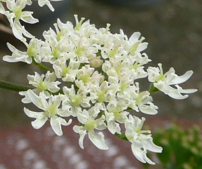Bi de Röverkuhl stünn en Bank, dat wüssen wi. Dor hebbt wi uns eerstmal daalsett un verpust. Ümmer noch güng mi de Bloom dörch den Kopp. Mi wull un wull de Naam vun de Bloom nich infallen. Up den Trüchweg na uns Auto heff ik mi twee Stengel vun de witte Bloom plückt un mitnahmen. Wedder to Huus heff ik de Bloom glieks in en Vaas mit Water up den Terrassendisch stellt. Dor kreeg se glieks Besöök vun en Sweevfleeg. De leet sik dat richtig goot gahn. Ik heff denn nakeken, wat dat för en Bloom weer. Waldengelwurz heet de Bloom, un ehr'n Besöök, de Fleeg, weer en Mist-Imm. De Poggenstohl heet Spechttintling. Un dat Ganze sünd wi up den Weg na de Röverkuhl wies woorn! Wat för Naams! De Biller köönt Se per Klick