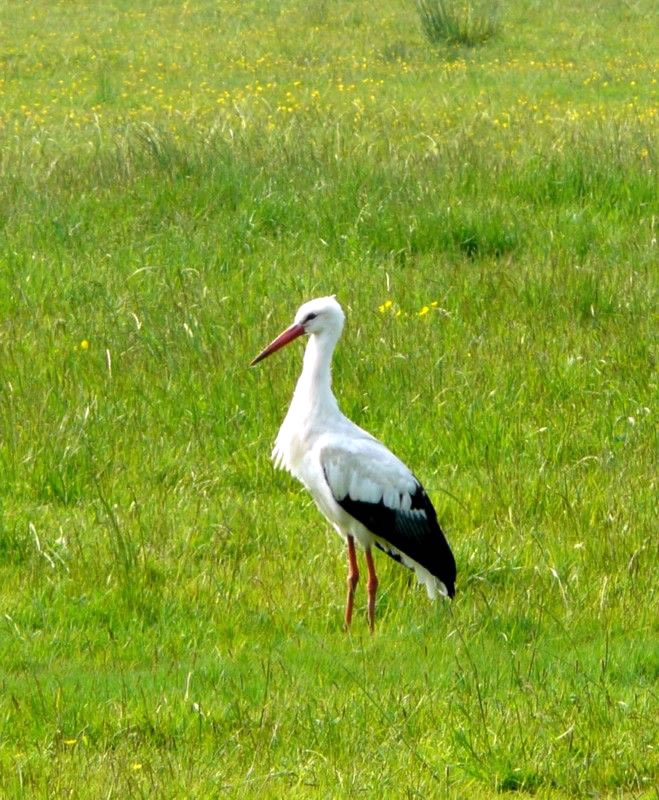 Büst du ok noch vun'n Klapperstorch bröcht worrn? Ik ja! "Storch, Storch, bester, heff ik denn later sungen. Bröcht hett he enen lütten runden Broder. Ik kunn Mudder aver nich överreden, mi to wiesen, wo de Stork ehr beten harr. So'n Schiet aver ok. Un denn ok noch en Broder! Denn harr ik ja glieks singen kunnt: "Storch, Storch, goder, Also, mi dücht, mit dissen Vagel is nich recht wat los. Dat geiht dissen Vagel mit den langen Hals un de langen, roden Been un den groten, roden Snabel wedder goot. He höört nich mehr to de bedrohten Vagels. He treckt noog Lüttvagels groot un he hett gode Levensbedingen. He bruukt natte Wischen an'n Fluss orrer See orrer Watergraben un'n lütten Wald dorto denn is dat al as en Paradies för enen Storch. He fritt Regenwürmer, Heuschrecken, Snicken, ok mal en Fisch, en Muus orrer enen Pogg. In sienen Kehlsack sleppt he al dit Getier in sein Nest un fodert de Jungen dormit. He hört to de Schreitvagels. Wenn ik an'n Stork denk, denn meen ik den Wittstork (Cicnia ciconia).