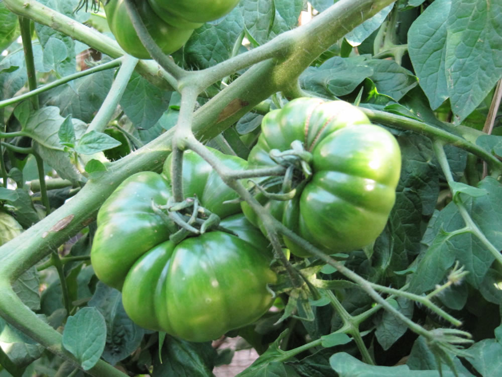 Dit Johr sünd dor Tomaten an, meist so groot as lütte Kürbisse. De eersten hebbt al en beten rode Klöör. Un wenn se buten nich ganz root warrn wüllt, denn maakt wi dat so as mien Mudder: in Zeitungspapier wickeln un achter de Sofakissen versteken. Blots nich rupsetten!