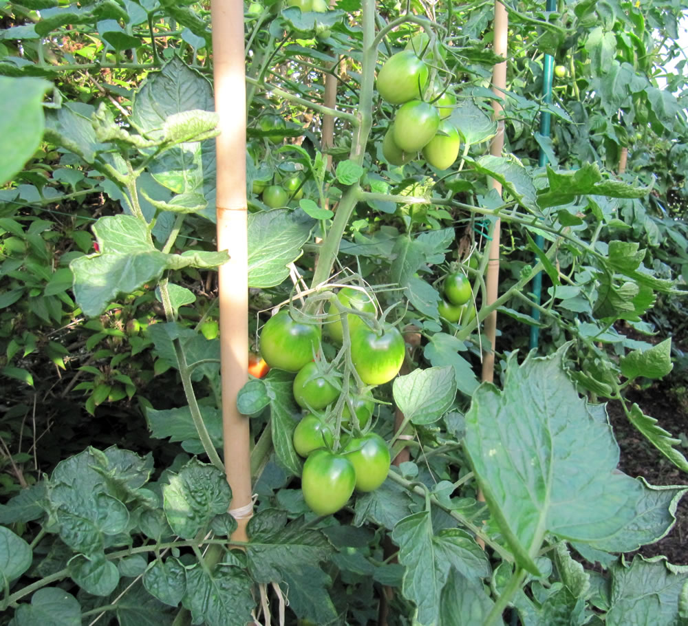 Klaas is avers ok jümmers dormit in'n Gang, afsnieden un düngen un anbinnen, ok mal afplücken. Sien Fru meent, dat he mehr mit sien Tomaten to kriegen hett as mit ehr. Dat stimmt nich, meen ik. Man Klaas hett sien Freud dorbi.
