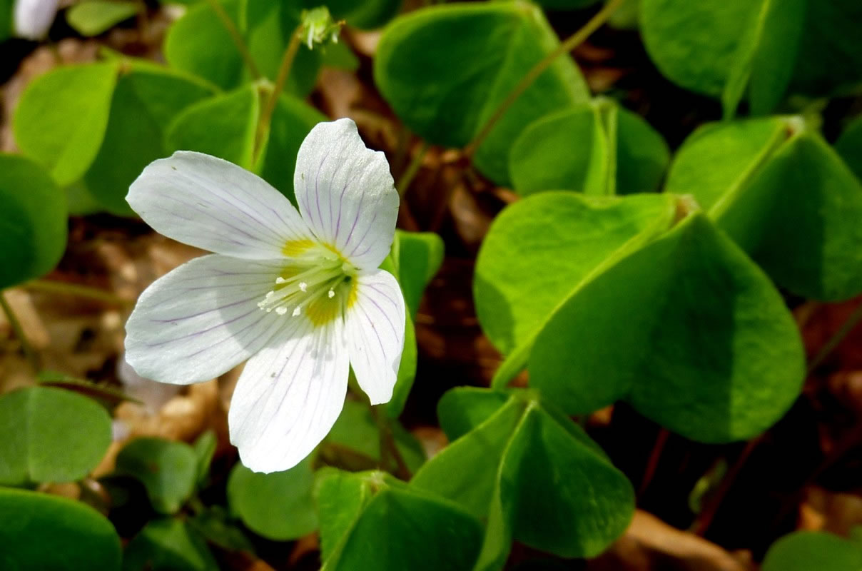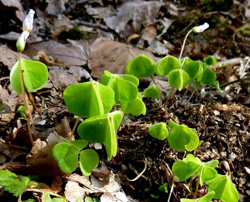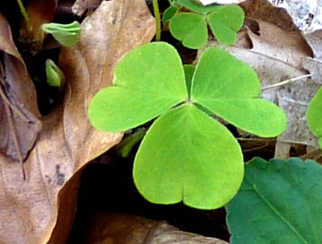 Eerst hüüt weet ik, dat man nich to veel vun de Bläder eten dörf. Se sünd swack giftig, se hebbt Oxalsäure. De Plant hett en ganz besünnere Egenoort. An't Enn vun den dünnen Stengel sitt dree Bläder. Se seht uns Kleverbläder liek. In'n Schadden wasst se dicht neveneenanner. Dat is en richtig gröön Teppich. Wenn dat aver warm warrt un de Sünn up de Bläder brennt, klappt se de ganz eenfach as so'n Regenscheerm tosamen.