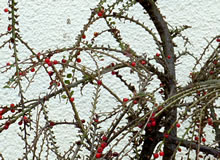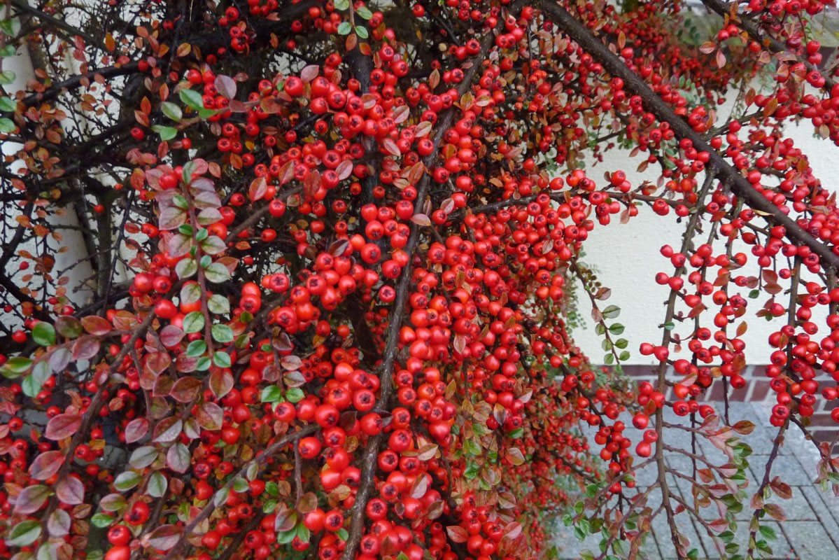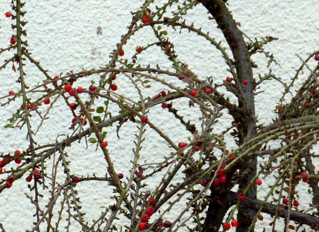 de Ut mien Kinnertiet kenn ik noch vun mien Modder den latinschen Naam vun den Busch, Cotoneaster. In unsen Goorn harrn wi ok enen Cotoneaster. Ik funn den Naam ümmer bannig intressant. Wat weer mien Modder blots klook, dat se solk Naams wüss!