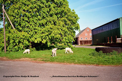 Oosterlämmer vun Katja H. Renfert Nu is dat bald wedder so wiet, Oostern steiht vör de Döör. In de Tied üm Oostern kaamt in Schleswig-Holstein jedes Johr bi 200.000 Lämmer op de Welt. Traditionell steiht en Lamm as Teeken för dat Leven un de Unschuld; dat meist witte Fell is en Symbol för binnere Reinheit un Frömmigkeit. In de christliche Kunst is en Lamm oftins en Symbol för Christus un wiest sien Sieg över den Dod un dormit sien Operstahn op.
