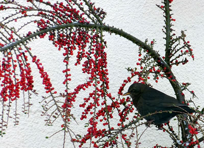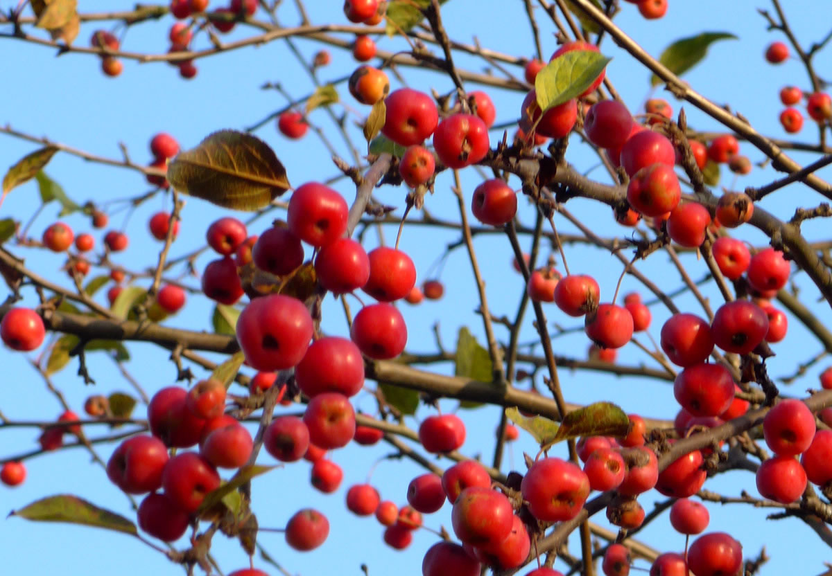 rode Appeln. Dor weern ümmer veel Drosseln to Besöök.