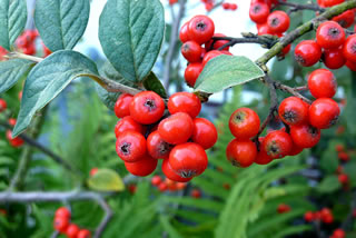 füerrode Beern un lüüch mit de Zwergmispeln üm