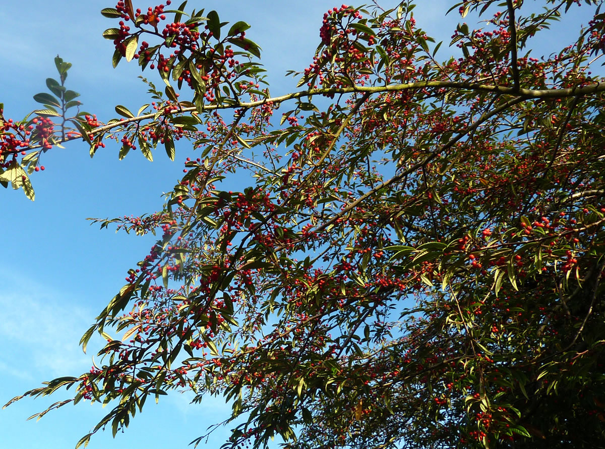 is en Verwandten vun de Zwergmispel. De weer düssen Harvst vull