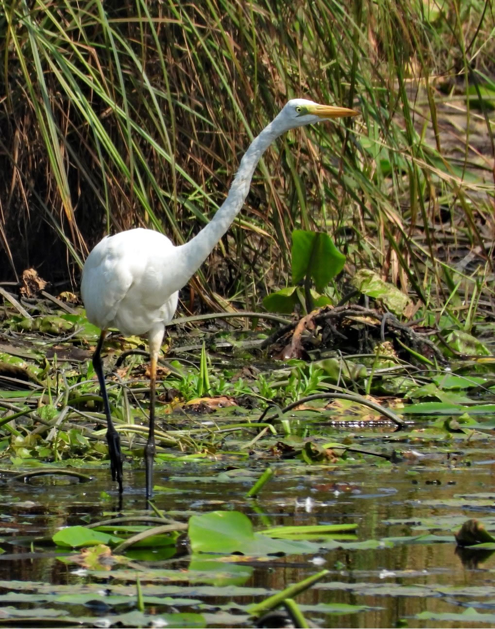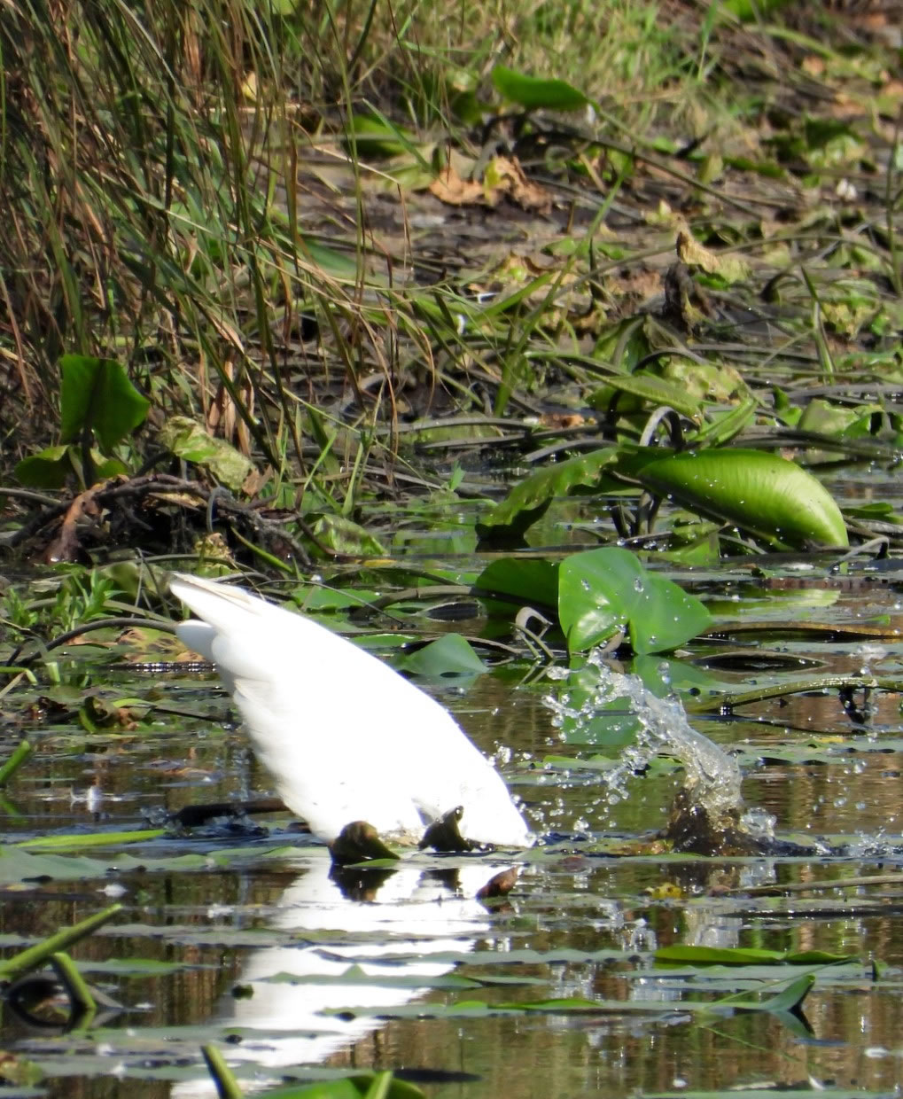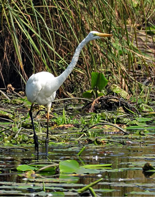 Sülverreiher vun Thomas Seemann Se köönt de Fotos per Klick vergröttern. Trüch kaamt Se denn mit den Zurück-Knoop op de Browser-Symboolliest. Meist is dat al wedder Harst, ok wenn de Warms noch över wegtüüscht. Ehrgüstern fohr ik över't Dörp. Achtern rut gifft dat en künstlich anleggten Kanaal för'n Waterafloop, 'neem ok de Angelvereen wat pacht hett. Ok ik fang dor mal den een orr annern Fisch ganz regelgerecht, mit Angelschien un allens.
