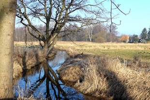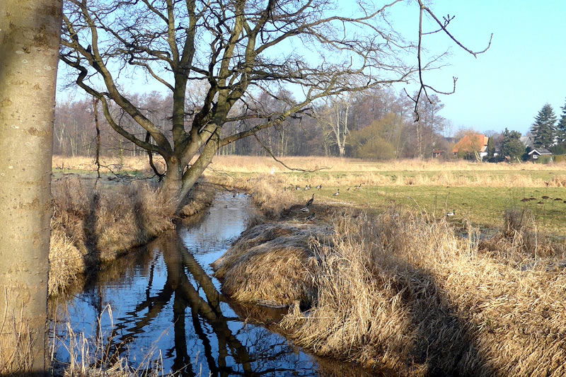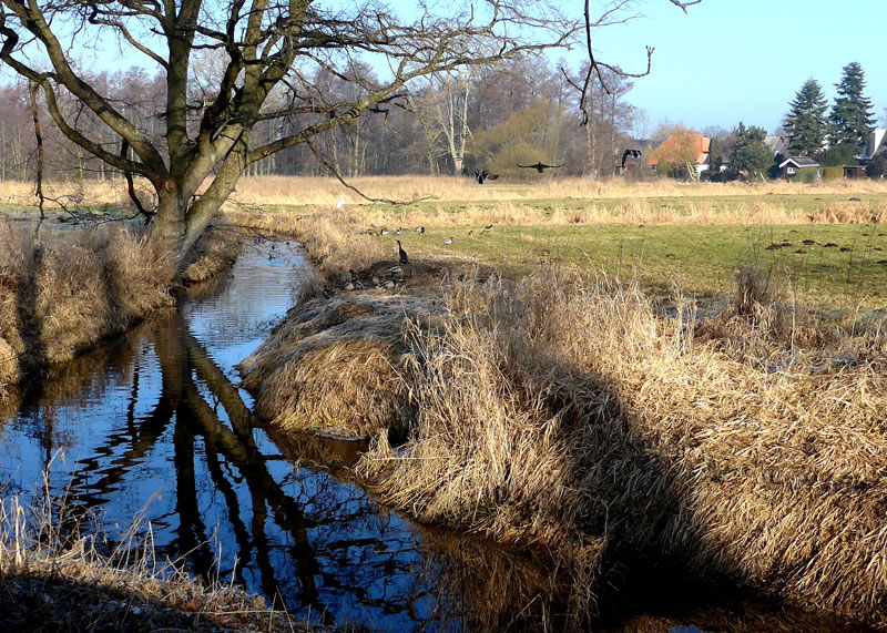 weer wenig Water un dat Schilf weer brun. Aver an'n Rand vun de Grüffen