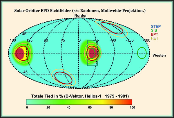 In dat Bild baoven werd nao Mollweide dat Flach (Fläche) van dei Heliohülle in Originaolgrötte anwiest. Neern is dei Farwcode as Funktion van dei Wohrschienlichkeit för dat interplanetore Magnetfeld (rot/geel höger as greun/blaw) mit dei Daoten van dei Helios-Ruumsonde. Dei SpaceWire-Standard wörd in'n Januar 2003 veröffentlicht un dei werd siet dei Tied von dei ESA, NASA, JAXA un van Roskosmos in väle Missionen insettet. Weltwiet bruukt man dit System in dei Wätenschkup, bi planetorischke Observationen un bi annere Ruumfohrt-Aktionen. Linktipps: |