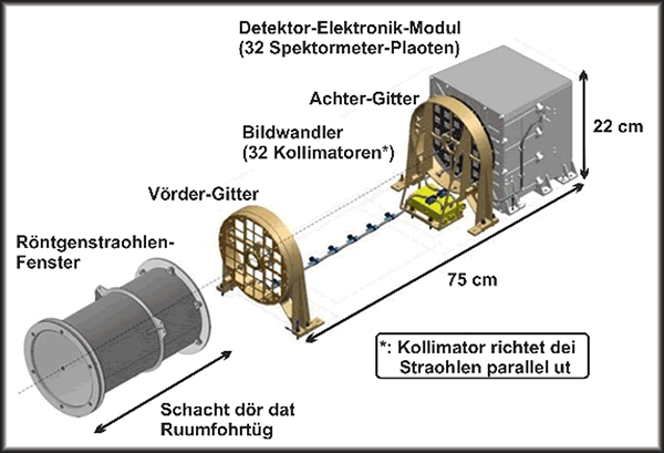 Bi ein Sünnenutbräken kaomt Röntgenstraohlen in den Weltruum. Wecke dorvan straohlt dör dei Röntgenfensters in dat Hitteschild in dat Röntgenteleskop. In den Bildgäwer werd dei dör twei achternanner liggen Metallgitters mit orig fiene, wat versette Löcker filtert, wonao dei up dei Detektoren draopet. Dor werd dei faotet un denn mit dei Elektronik verwarkt. Dornao werd disse Daoten nao dei Eern schickt. Dor kann man ut dat Moiré-Muster dat Röntgenbild uträken.