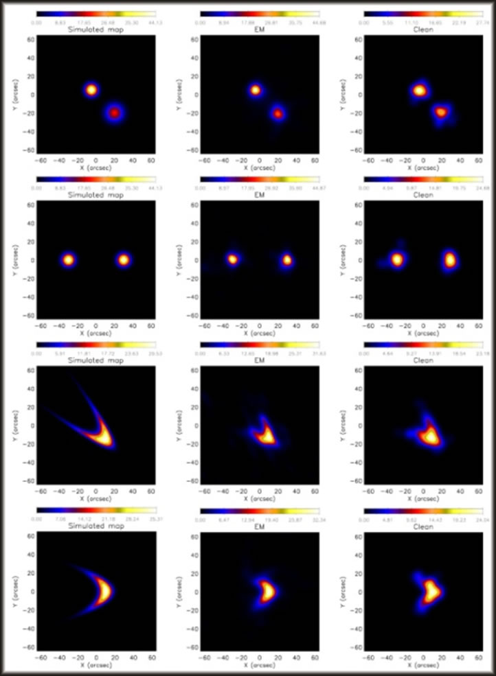 Neern süht man eine Simulation van dat, wat STIX seihn werd. In dat Bild neern wiest dei middelste Kolonne dat beste Resultaot.