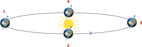 Wenn wi uns de Ümloopbahn vun de Eer nocheens ankiekt un dorbi in'n Kopp behollt, dat de Eer ja verkippt is, denn erkennt wi, woans de Johrstieden tostann kaamt: