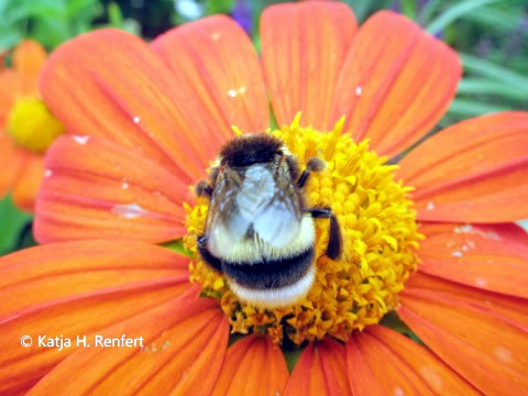 Kloor is dat allens 'n Barg Arbeit, liekers nu, wo dat so dröög weer. Jeden Morgen un jeden Avend literwies Ammers mit Water rünnertoschleppen (Slauch geiht nich in unse Wahnanlaag). Aver wenn ik seh, wo allens blöht, de Vagels mi mit ehrn Gesang al fröh an'n Morgen Freid maakt, achtern op de Wisch de Kaninken rümloopt un de Katteker sik vun Boom to Boom swingt, weet ik: dat is mien Bidrag, beten wat för de Natuur to doon.