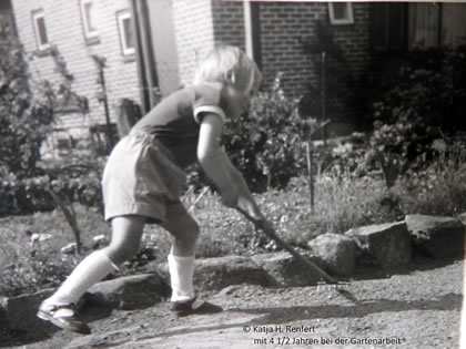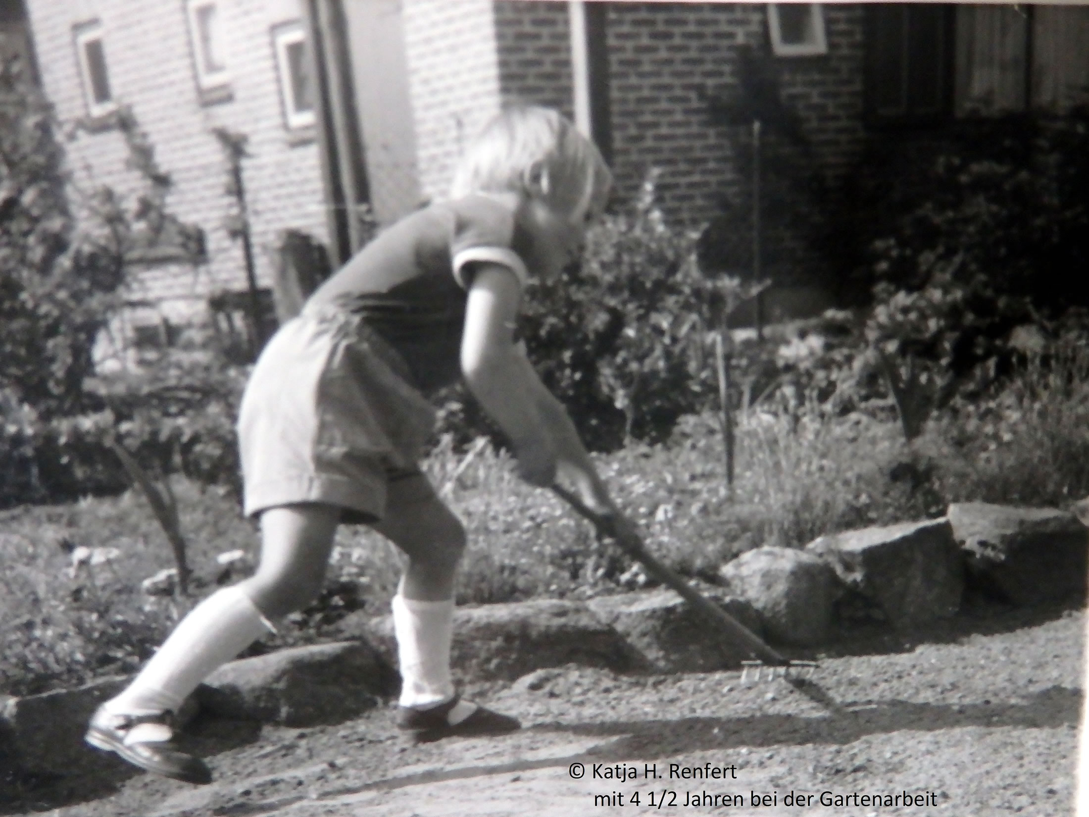 vun Katja Renfert Vör 19 Johren bün ik in düssen Wahnblock introcken. De beiden Fruunslüüd vun de Wahnungen ünnen hebbt mi fragt, of ik uk Vermaak an Goornarbeid heff kloor! Al mit 4 ½ Johren heff ik flietig den Goorn vun mien Grootmodder schier maakt, un as mien Vadder as Dörpschoolmeister na Oldendörp in Schleswig-Holstein versett worrn weer, harrn wi en 1.000 m² grooten Goorn. Mien Öllern hebbt jeden vun uns veer Kinnern en Stück to'n Beplanten geven.