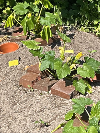 Dat letzte Johr heff ik na de Ieshilligen nich een Zucchiniplant mehr kregen. Dorüm heff ik dit Johr al an'n veerten Mai tolangt. Teihn Daag stunnen de dree lütten Pött nu daags buten in en schulig Eck an de Huuswand un nachtens binnen op'n Kökendisch. Fein wussen sünd se. De Pött weren bald meist to lütt. Blots na de Ieshilligen woor't ja noch wedder so wat vun koolt, dat ik de lütten Planten in gröttere Pött ümplanten muss. Daags buten nachtens binnen. De eersten Junidaag woor't denn endlich 'n beten wat warmer, man