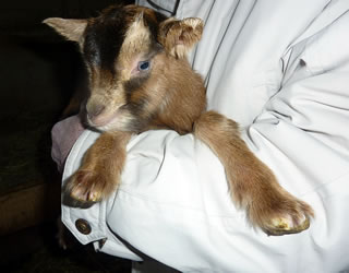 "Möchten sie wieder gern en Ziegenkind auf den Arm nehmen?",
