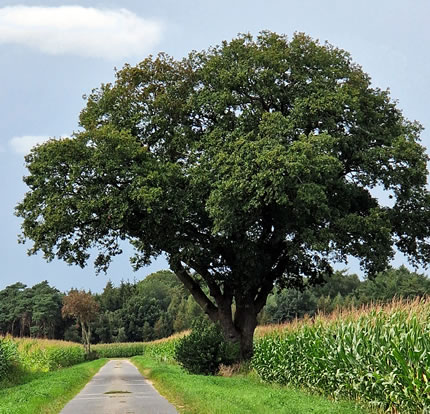 Dat stimmt! Wenn een bedinkt, dat dat en ganz schöne Buul afgeven deit, wenn een dämelig or in'n Düüstern dorgegen löppt. Dorbi is jeedeen Boom mal as Samen un lüürlütt Plant anfungen to wassen, zoort un fienföhlig, hett Fröst, Snee un Ies standhollen un leet Wind un Weder över sik tehn. He muss mit Hitt un Dröög trechtkamen un denn ok noch den Dusel hebben, dat Deerten, Käver un anner Aastüüch em nich an de Wuddel or Bork kemen. Un denn is dor ja ok noch de Minsch, de em ja al vele Johrdusend as Füerholt or Boholt an't Lief güng aver ok jümmer en afsünnerlich goden Sinn to Woold un Bööm plegden, wiel se dor Nohren un Schuul fünnen. Disse gode Sinn bringt dat aver ok mit sik, dat wi Bööm un Woold minschliche Macken toschrievt: hart, stolt un standhaft, dick un slank, krumm un scheef, oolt, klapperig un kröpelig. Welke seht in en Boom gor en Fründ un annere meent, de Woold nöödigt jüm to'n Wooldbaden dat bedüüt, ünner Bööm kommodig spazeren gahn un de Natuur mit all Sinn wohrnehmen.