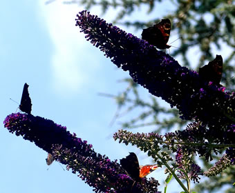 An 20. Juli harr ik denn morrns en lustig Beleevnis. Up de Trepp flöög mi wat Düsteres üm den Kopp, en Bottervagel! In de Stuuv flatter he glieks an't Finster. Dat weer ja en smuck Tagpfauenoog. He wull ruut. Gau haal ik en Glas ut de Köök. In dat Glas heff ik em na buten bröcht. Dor weern noch mehr Bottervagels. De seten up den frisch upblöhten Phlox. Na, dat geev ja doch noch mehr Bottervagels. Bi mien Naver nevenan seten up den Schmetterlingsboom siet twee Daag veel ünnerscheedlich Bottervagels. Besünners veel Pfauenogen kunn ik sehn. Wat dat wull up sik harr, dat se sik nu eerst sehn leten? Leeg dat an den Warmwederinbruch? Dor müss ik doch mal rümfragen, ob de annern Navers dat ok mitkregen harrn.