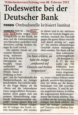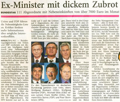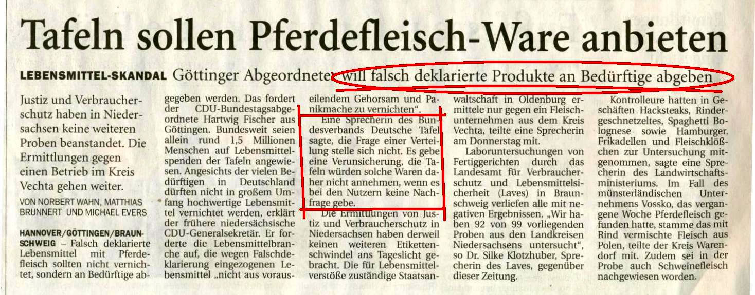 ...un schiens een Teeken van Düwelsbesäätenheit un verbräkerisch Doon tominnst in dat ole Lutherstaddje Worms is dat woll so. De Wormser Boadballibüppersten (de hevvt schiens aal mitnanner een schooner Geweeten as de Poapst) is infallen, veer Froolüü, de deelwies all een halfed Halfjoahrhunnerd Billjetts an de Boadwilligen utgääven, wägen een Koffikass mit veerundartich Euro Klöätergeld föör de Kolleechenkring to feustern. Sogoar een Stoatsavcoaten hett sükk van de Lüü anstöten loaten, ok noch de Begreepen Ünnerschloagung un Untrööheit in de Wachtschoal to schmieten. Wenner de Froolüü dat Koffigeld ut de Staddkass stiebitzt un de Kommunibööker ümschrääven harn, denn wee dat gannskeen Froach, dat see dorföör instoahn mussen wat see denn ok säker doon würn, oahn eers groodoardich de Waarkgerichtsboarkeit antoropen. Nu räärt wiers een ut irgendeen Ekk, dat dat Koffikassen-Anlärgen tägen de un de un noch een annern Vöörschrift is, un dat in son Kommunibedrijf joa Örnung hollen worden moot. Recht so, kann ikk dor blods särgen oaber ikk froach mi, wor disse Örnung denn is bi Noams as Funke, as Zumwinkel, as Hartz, as Nonnenmoaker, as Schäuble, as Regina van Dinter un aal de anner Prominenz ut Wertschkupp un Politik. Nu glööv ikk doch verraftich ok bold, dat dat in Düütschland mit dat Gerecht föör jedereen nich mehr so lieklang löpt. |