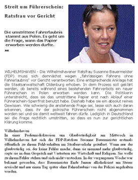 Irgendwu schient Käßmanns Margot de Kaarkentant dor gewaltich wat dörnanner to kriegen. Is see bit nu stolt doarup, un ok woll sowiet good dormit dörkoamen, sükk as Froominsch up Mannslüürebetten to präsenteeren un ok wiers wat breet to moaken, so hett see sükk nu mit dat in Dunas sükk achterd Stüür setten un up Hannowers Stroaten rümtojükeln up een Keerlsdomään begeeven, up de see hör letzd spierke Wievhaftichkeit up Spill sett un verlüstich goahn is. Suupen un besoapen Autofoahren is bi us in d Gesellschkuppsdenken jümmers noch Mannslüüdoon mach dat ok noch so ballköppich wääsen. Dat Froonslüüt sükk moal een Drinken, wenner see up een Baal ov een Fierderee sünd harijeese ok ok Froonslüü mooten sükk wiers moal de een ov anner Keerl moi suupen oaber denn in Dunas in een blikkern Kist to stiegen, üm up de Groostaddstroaten russisch Roulett to speelen... Froo Käßmann, dor häst Du liekers een bietji tovääl Kerl ut Di ruthangen loaten. Wat Margot Käßmann bit nu mit hör anner Doon föör Froolüü in d Gesellschkupp oahn Twiefel Goodes up de Padd brocht hett mit de Suuptuur van verleeden Soaterdach hett see dat Waark stuv wäär hochkant vöör de Müür sett. |