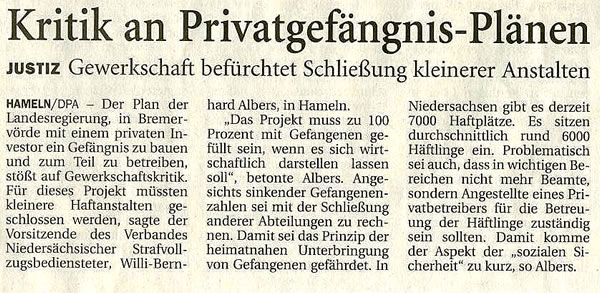 Wat ward denn nu mit de Böverboas van de bajuwarischen Ballträders in Munich? Moot he de Fleeschkremmels, de in siene Wurstköäken hüpenwies ut dat Fleeschk van dode Deerten trechtschostert warden, in de tokoamen Joahren in de Beköstigungssoal van Stadelheim achter schandinovisch Finster-Vöörhangers in sükk rinschuuven ov kann he wiederhen mit siene Patzlüüd in de Schikkeriakrööch van Munich toafeln? Wenn he denn achter d Kaschott moot, kricht he denn Freegang, üm de Uppasserkring van sien Footballvereen in de Säbener Stroat as Boas vöörtositten ov sett sükk de heele Bagoasch denn in Bewägung un düükt in de Stadelheimsche Stoatsherbarch up, üm dor in d Besökersoal hör Upsichtsroats-Sitzungen ovtohollen? Een Stüürbedreeger van disse Gröttde, de de bajuwarische Sportpries an sien Böst stääken hett, un bi de de Gülden Sportpyramide van de düütsche Sporthülp in d Köäkenschkapp steit, un de upletzd noch van Keunich Burda mit een Weertschkuppps-Bambi utteekend worden is, de is man dat doch woll schüllich un sünners in usen Rechtsstoat. Dat mussen de Heeren doch eelich doon su fast as see (noch) to hör Frünnd Uli stoaht. Wenneer de Heeren van de Telekom un Adidas, van Audi un Focus, van UniCredit und VW/Porsche mit CSU-Stoiber upto mit hör Haartensfrünnd Hoeneß dor achter de Tuchthuusmüüren aal tosoamenhukelden, denn wee dat föör de Stoatsmacht doch een eenmoaligen Gelägenheit, de Büngel totoluken un de Heerschaften glieks dor tobehollen denn wonsanners höört see doch nich hen aal mitnanner. |