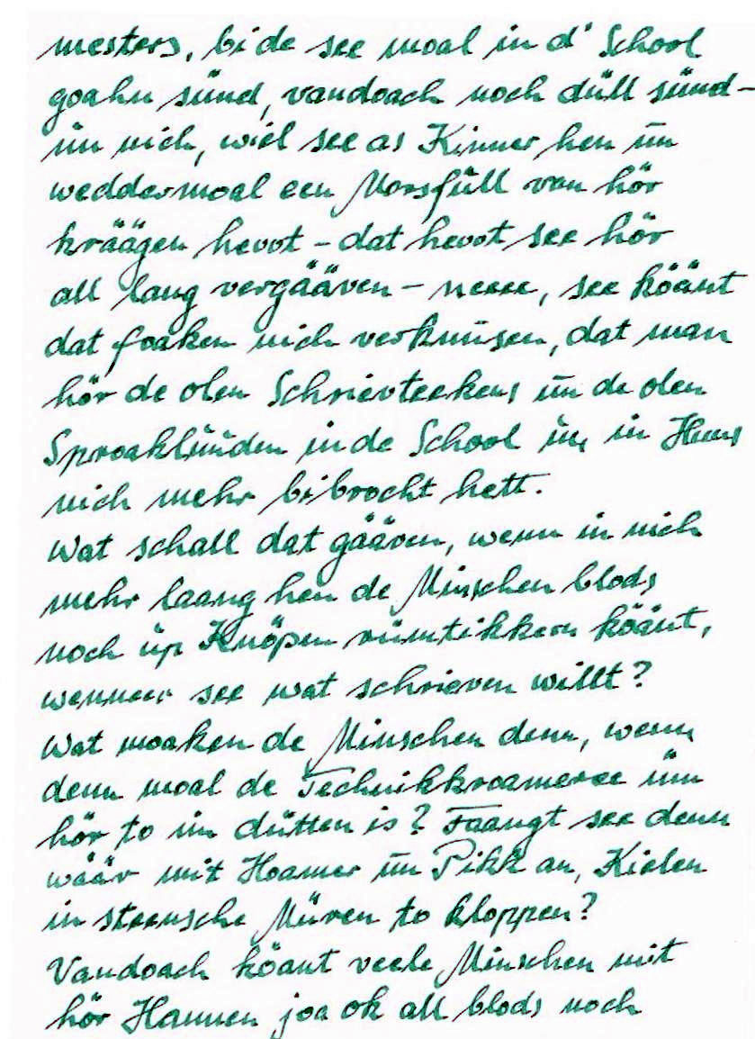 stiewe Büks antrekken to mooten as dat Hoochdüütsche,