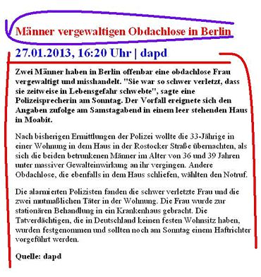 Wenn ikk een Vermelden so as dat hier ut us Bladdje to sehn is dör de Noarichtenwelt steustern seech, denn kriech ikk elkermoal Krüllern in d Denken. In de Kopputsoach heet dat heel düdelk, dat een Minschke, verurdeelt wägen een Vergewaltigung, unschüllich in d Koahn sitten deit. Dat is een kloared Benöömen. In dat lütker Schrieveree dor ünner heet dat denn wäär van womöglich ein folgenschweres Fehlurteil gefällt. Een poar Satzen wiider kummt denn vandach, dat aal dat Särgen, wat to disse Verurdeelung föört hett, van vörn bit achtern Löägens west is. Dat Froominsch, wat sükk domoals as Opfer präsenteert har, hett togeeven, dat see dat Mannsbild mit disse Anschülligung to de Tied blossich loswarden wull. Un wu geit dat bäter mit, as heel luut to bölken, dat man (Froominsch) van de Keerl, de een lastich word, vergewaltigt worden is? Dat nu oaber nümms wat in de verkeerde Hals kricht wenn een dee anner Gewalt andeit, ov sükk mit Gewalt wat hoalt, wat de anner hüm in de Momang nicht gääven will ov kann, denn hört dat bestroaft un ok mehr bestroaft, as dat vandoagen foaken so goaelk is. Dor schull man sogoar mennich Deel eenfach ovschnieden. Dor much ikk keen Twiefel an upkoamen loaten. Mi geit dat hier üm de Oart un Wies, wu de Schrievers un Schnakkers hör Berichten över dit un dat, eenfach över dat Geböören in de Welt in Worden un Satzen inpakken. Jeden will wat dorto särgen un nümms troot sükk liekut to schnakken un to schrieven. Dor warden denn Minschkes ok wenneer see hör Undoon liekherut tögääven hefft, ov sogoar wenn man hör bi hör leeged Doon androapen hett jümmers as vermutliche oder vermeintliche Täter beteekend. Wu leech is dat eelich? Kuroasch lett anners un Zivilkuroasch noch ganz anners. Also, ji Schriever un Schnakkers in d Landje troot jo endlich wäär Peerd un Rieder to nöömen ov anners sächt, foat de Düwel bi Hörns un Steert, wenn he mit sien Peerfoot an jo vöörbitrappelt. |