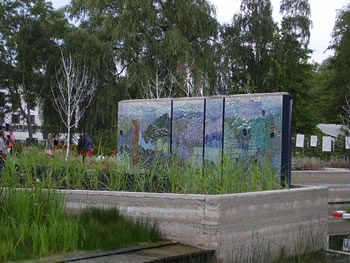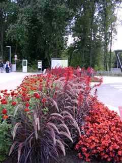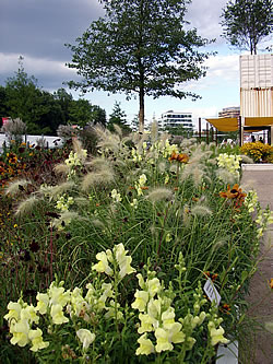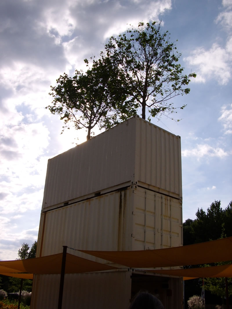 In de Blomenhalln wüllt wi nich ringahn, wi wüllt dat Daglicht geneten, so lang dat geiht mit uns' Avend-Ticket. So laat wi uns op den Hööfdweg vun de "Haven-Welten" mitnehmen. Düsse Deel vun de Utstelln lett avers nich so recht as en Goornschau; ik föhl mi ehrder an de Expo 2000 erinnert. Düt is en Aart Planten-Lehrpadd, een kriggt t.B. veel över Boomwull, Bambus, Siedenrupen vertellt. Bi de Siedenruup is de Betoog to de Plant natüürlich de Muulbeerboom, den sien Bläder de Siedenrupen freet. Twee dorvun (Muulbeerbööm, nich Siedenrupen) thront op den Container, de de Infos to de Sied wiest.