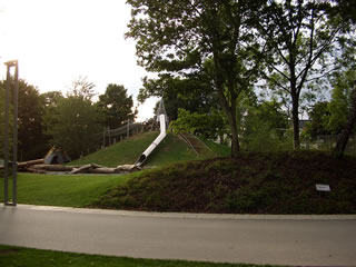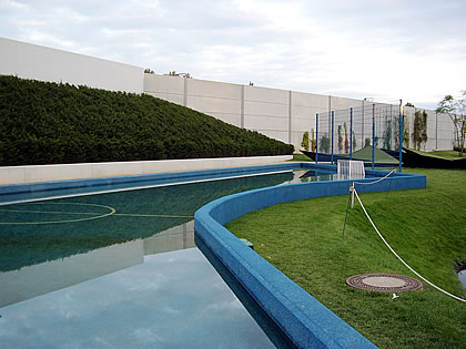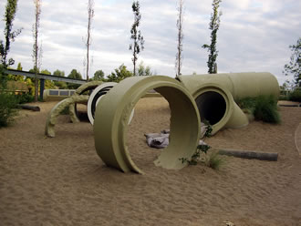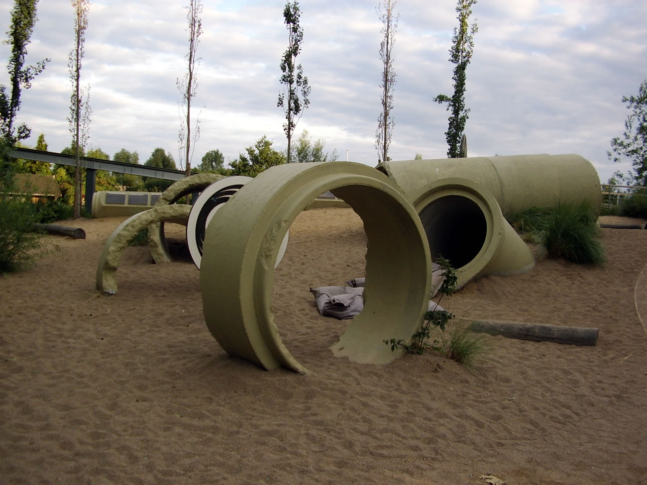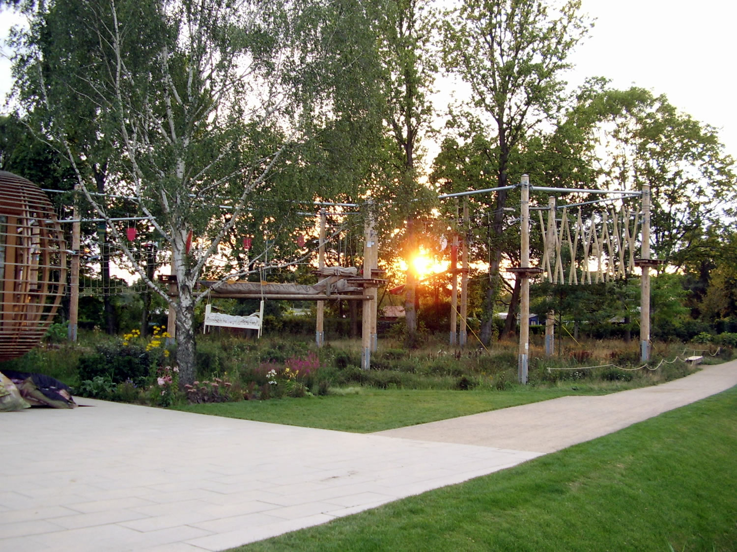 Wi gaht nu de letzte grote Ass hooch, trüch Richt Hööfdutgang. Dat is de "Welt vun'e Bewegen". Dat dücht uns, as weer düt hier mehr en Frietiedpark as en Goorn. De Plant steiht nich mehr in'n Vörrergrund, sünnern dat Speel in't Frie. De Sportreedschapen sünd originell orr, wenn se konventionell sünd, doch originell utstaffeert.