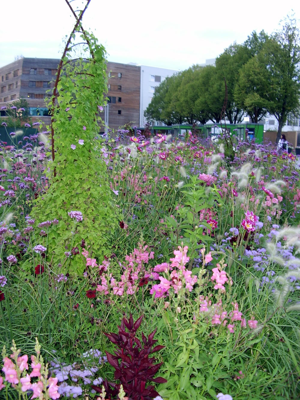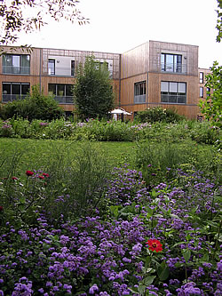 Glieks achter de S-Bahn Wilhelmsborg t.B., 'neem en Footgängerbrügg na dat IGA-Gelänn röverföhrt, steiht dat Hööfdhuus un Flaggschipp vun de IBA, de niege Behörde för Stadtentwicklung un Ümwelt. Dat Thema passt. De Foorm is ja ganz smuck, man de Klöören hebbt mi't nich andaan. Poppig op Düüsterbruun! Ok stückerwat anner Hüüs tekent sik sünnerlich dör ehr Klöörgestalten ut, nich dör de Foorms (vun buten). Mal Hellgröön, mal Geeltöön, mal bunt mi dücht, Klöör is dat aktuelle Stilelement.