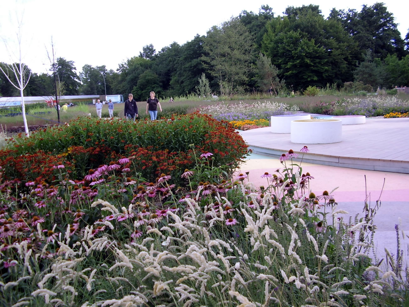 Op de grote Böhn speelt en multikulturelles Wilhelmsborger Schölertheater Shakespeares "Sommernachtsdroom" as Hip-Hop-Musical mit Danz un Rap-Gesang. Se speelt mit dwanglose Hengaav, lacht, wenn se mal Fehlers maakt, singt un danzt as verdull un begeistert de Tokiekers. Wi günnt uns en Paus un besluut, de "lebennigen Kulturlandschapen" nich aftowannern. Wi sünd beförchten, hier warrt dat Lieke as bi de "Welt vun de Kontinente" mit uns noorddüütsche Landschapen maakt. Lever bummelt wi trüch un gaht nocheens dör de Dahlien.