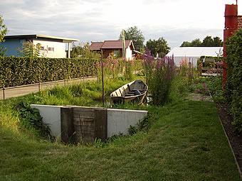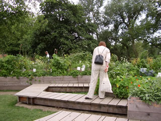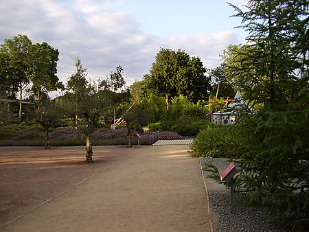 Linkerhand liggt nu de "Kuckucksteich" achter Planten. Op Hoochbeete, de vun Holtsteeg ümlopen warrt, sünd Köken- un Nüttplanten vun Kinner to lütte Kökengoorns tosamenstellt un beschrifft woorn. Kohl un scharpe Schoten wahnt hier freedvull blangenanner, överwokert vun Krüder.