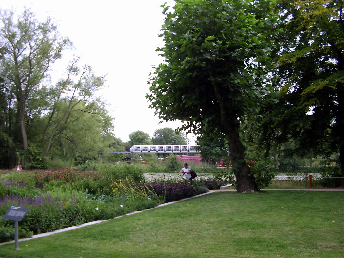 De Weg föhrt nu trüch na den "Knüttenpunkt" dör stückerwat originelle Watergoorns. Linkerhand löppt de Monorail-Bahn, hier is de Noord-Statschoon. (Monorail heet: dat hett man bloots een Schiene.) Dor muttst extra betahlen, wi schenkt uns dat (in'n Sinn vun: Wi laat dat na). Staht avers orrig wat Lüüd för an. In'n Achtergrund gifft dat een Goorn, 'neem denn un wenn en Geysir hoochgeiht, en Waterfontäne, de man bloots tweemaal speet un denn wedder en ganze Tied wegblifft. Twüschendörch kiekt wi uns de annern Goorns an, un dreemaal speet de Fontäne, man ik schaff dat nich, jüst den Momang to knipsen.