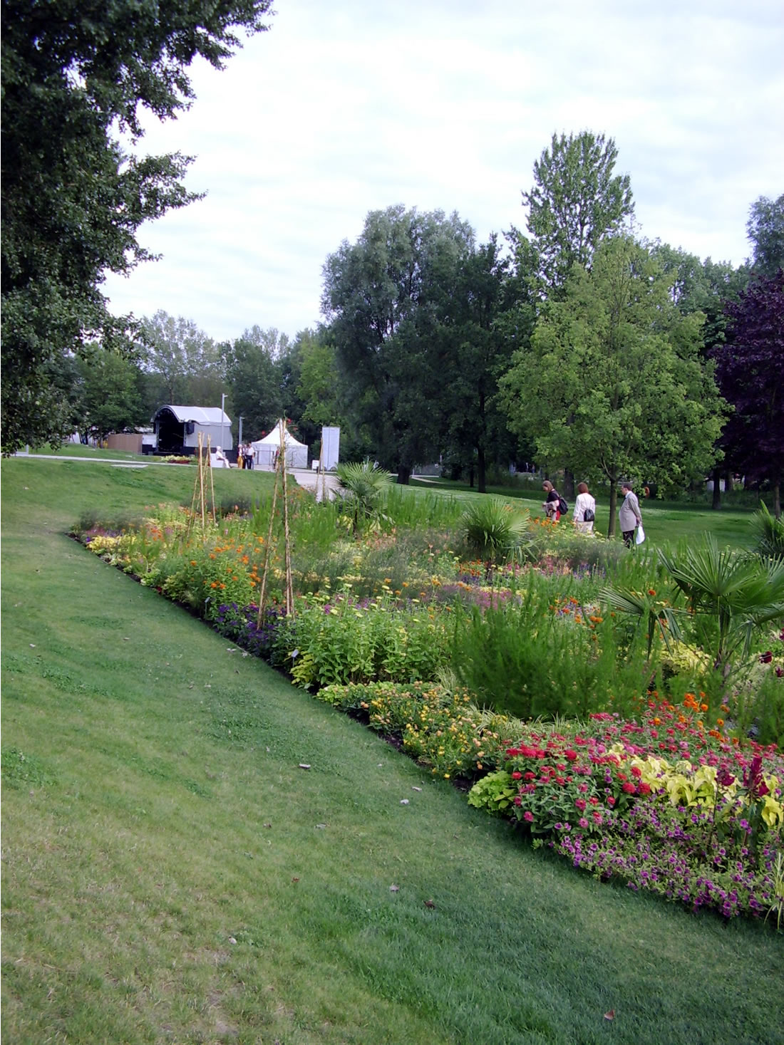 An wunnerschöne Plantenslääg gaht wi langs, dat Water vun'n Kuckucksteich blenkert hen un wenn dör. Dat is hier al de "Welt vun de Kulturen". Veel Insichten in de Bedüden vun Goorns in ünnerscheedliche Kulturen (orr wat schallst sünst verwachten ünner en "Welt vun de Kulturen" op en Goornschau?!) hett uns düt Rebett nich to vermiddeln. Dat gifft Infos to enkelte Planten, mang Hoochbeete liggt en Café un Speelanlagen, un wirklich tummelt sik hier jüst en Koppel Kinner vun ünnerscheedlich Huutfarv. Linkerhand sweevt miteens en sülvern Kroonlüchter, wi gaht em na. Dorünner liggt en Frieluft-Eetplatz mit afsichtlich heterogene Stöhl, 'neem kulturell tosamenmixte Menüs serveert warrt, steiht op de Info. Hm. De Eetplatz is verlaten un lett nu in'n Avenddaak op noble Wies melancholisch. As wenn de Mulitkulti-Versöök en Knax kregen harr. Orr as wenn dat bald dormit ut ween schall. Is dat so? Wenn dat Wahnen in Wilhelmsborg jümmer dürer un dürer warrt, is dat wiss, denn denn is Wilhelmsborg de längste Tied en Smölttegel west. En lütt beten warrt hier Wilhelmsborgs multikulturelle Gegenwart driest as Deko för en heile Goornwelt bruukt, dücht uns. Linkerhand liggt Schrebergoorns, afslaten gegen de Besökers, en egen Welt; un jümmer wedder loopt schöön pleegte Aftoogsgravens dör dat Rebett. De vertellt en anner Geschicht vun de "Kulturen" vun düsse moorige, slammige "Waterwelt", düsse Insel woans se kultiveert woor, woans lütte Lüüd sik hier ansiedelt hebbt, un denn de Arbeiter-Kultuur vun de Lüttgoorns. Hier liggt en Utstelln ünner de Bavenflach. Faken sünd de Kuhlen kreativ in de Plantenwelt inbuut. Ok en lütte Böhn för Opföhren gifft dat hier. Dat gifft avers later noch en gröttere.