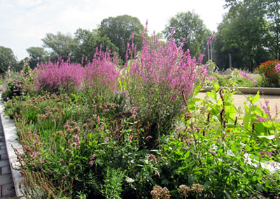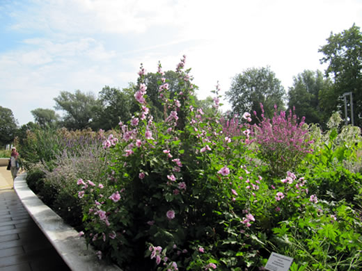 Rosenduft ümweiht, ik much mi gor nich trennen. Un denn heff ik noch nie se vele vun uns gode olle Buntnessel up'n Hupen sehen, as hier. Se lüchen in deep satt düüsterroot, man ok in dat bekannte root-gröön, ut vele Beete. Wi hebbt veel ünnerschiedlich Schrebergoorns ankeken un ok Loki Schmidt ehre lütte "Wildnis". Wi kemen an en Stück Heide vörbi. De Erika füng graad an mit't Blöhen un ok en lialütt Hünengrav hebbt wi dor funnen, so lütt, dat kunn blots för Poppen west sien. Beten wat erschöpft hebbt wi in dat olle "Wasserwerk" Middag eten. Matjes mit Gröne Bohnen. Weer goot. Un en Glas Wien hett denn ok unse Levensgeister wedder in'n Gang sett. Bet Klock söven an'n Avend sünd wi vergnöögt dörch de Utstellung rullt. Mien leef Mann hett in Ruh al de Hüüs, de dor nieg buut sünd, ankeken un kommenteert. Un denn hebbt wi uns ok noch en Rundfohrt mit de Tog, de up een Schien över dat Utstellungsgelände rullt, gönnt. De Schiene is up Stelzen verleggt, so dat wi goot kieken kunnen. Dorto vertell de NDR över allens, wat dat rundüm to kieken geev. Dat Motto vun diese Goornschau is "In 80 Goorns üm de Welt", na de Idee "In 80 Daag üm de Welt" vun Jules Verne. Ik tell mal up, wat ik allens sehen heff, an wat ik mi erinner: