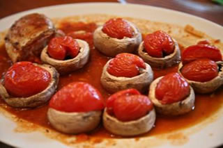 "Gefüllte Champignons"! Sehgen goot ut, as lütte