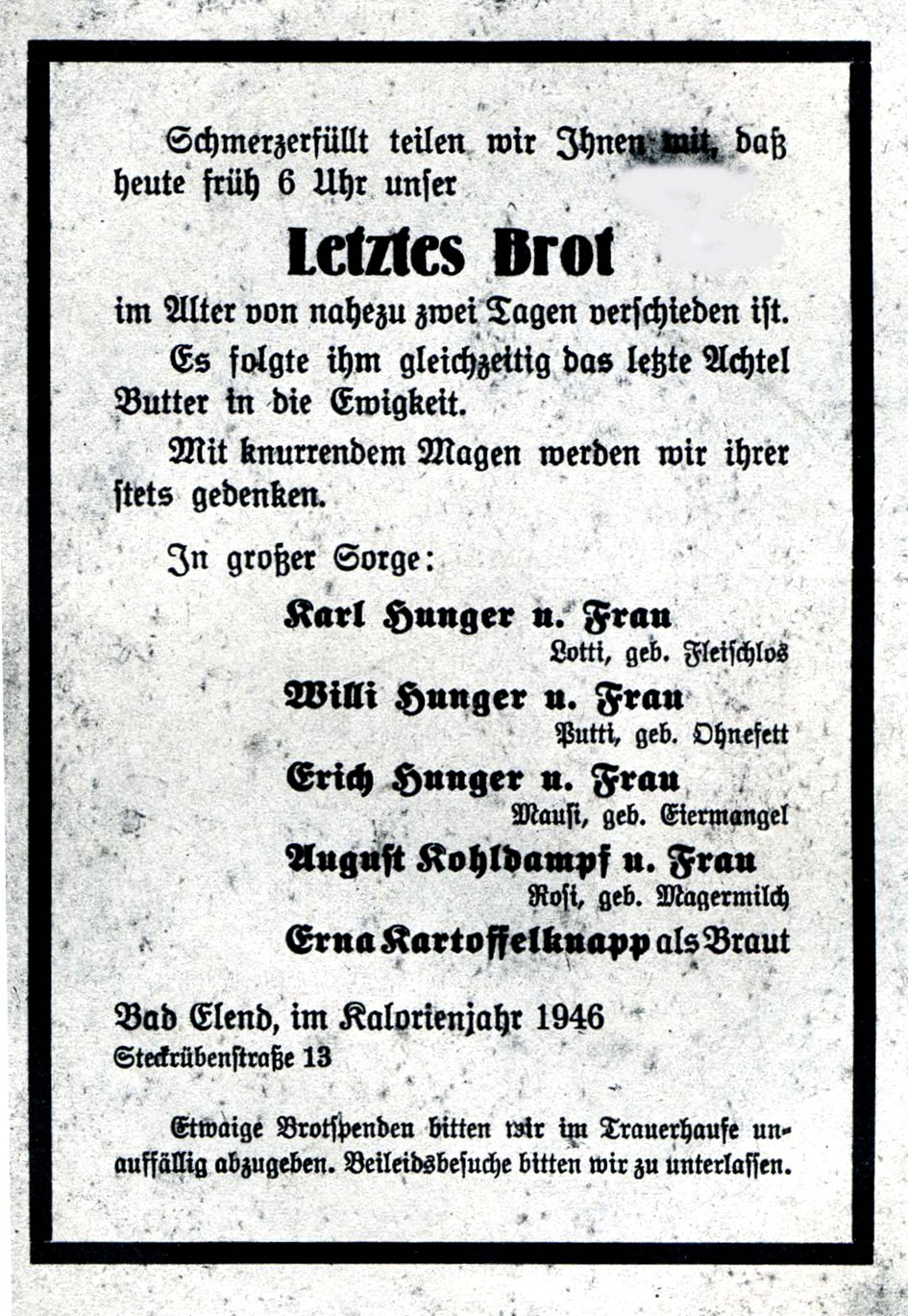 Dat wöör in'n Harvst 1946 in Ahrensböök verdeilt.